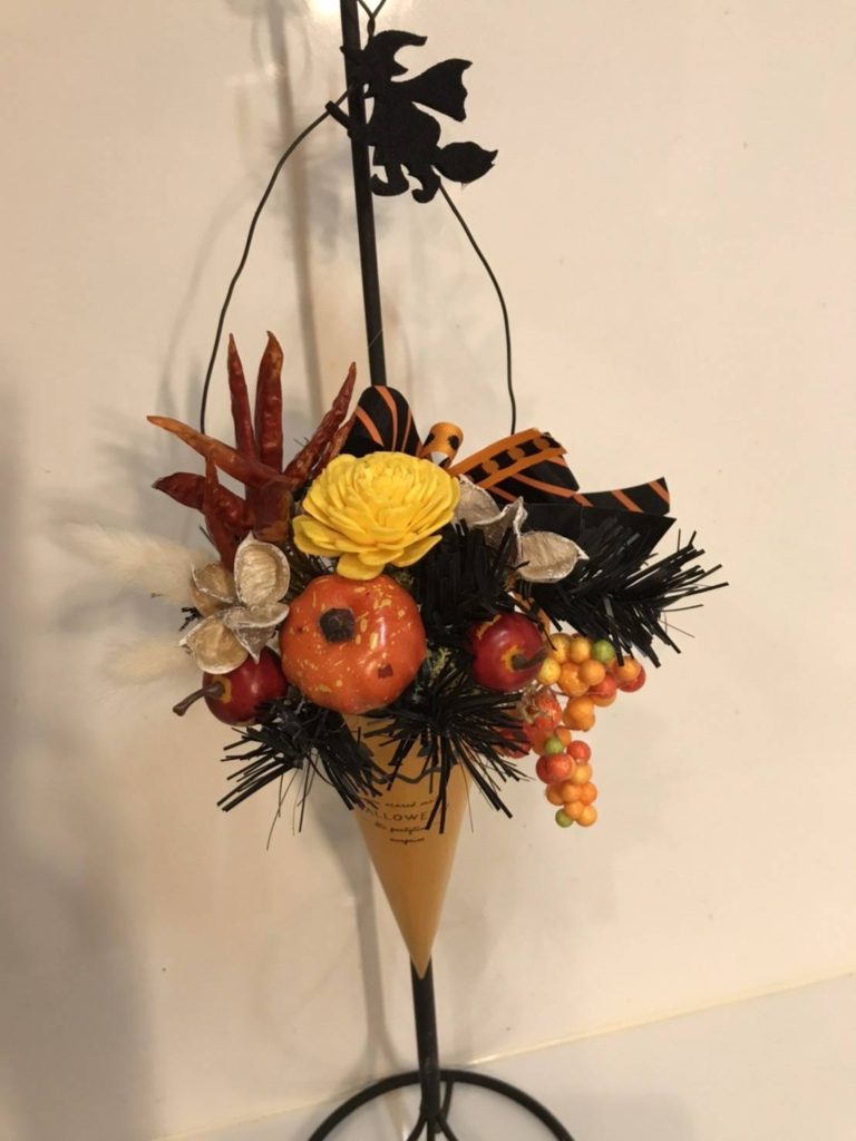ハロウィンをイメージしたフラワーアレンジメントづくりをします。